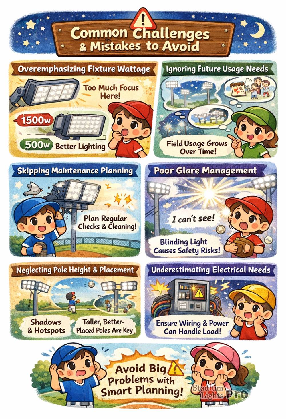 Even with the best intentions, baseball field lighting projects can run into problems if certain factors aren’t carefully considered. From design decisions to long-term maintenance, avoiding common pitfalls can save time, money, and frustration while keeping players and fans safe.